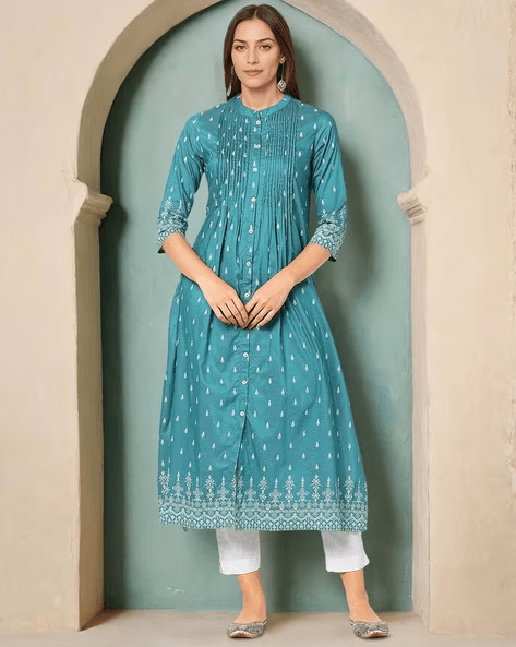 🔸 Fusion Silhouettes: Ethnic styles meet contemporary cuts—kurta dresses, straight pants, and jacket sets.
