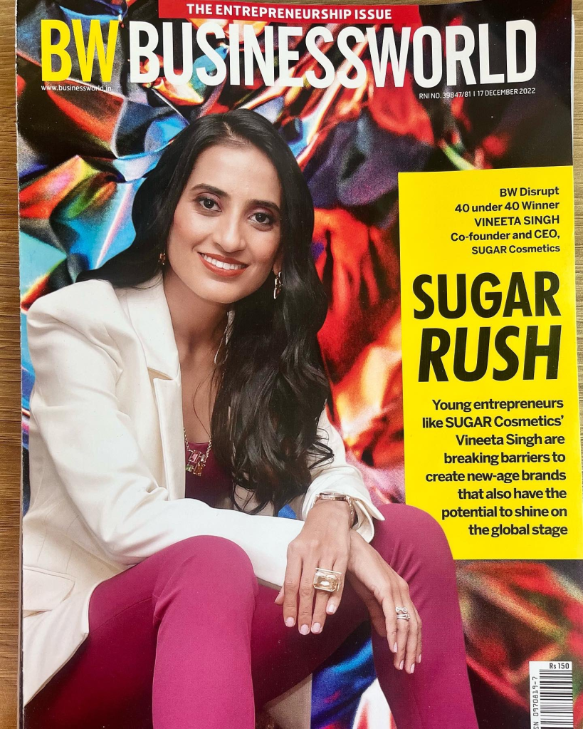 In 2015, Vineeta co-founded Sugar Cosmetics along with her husband and business partner, Kaushik Mukherjee. Unlike most beauty brands that followed global trends, Sugar was born with a “made for Indian women” philosophy.